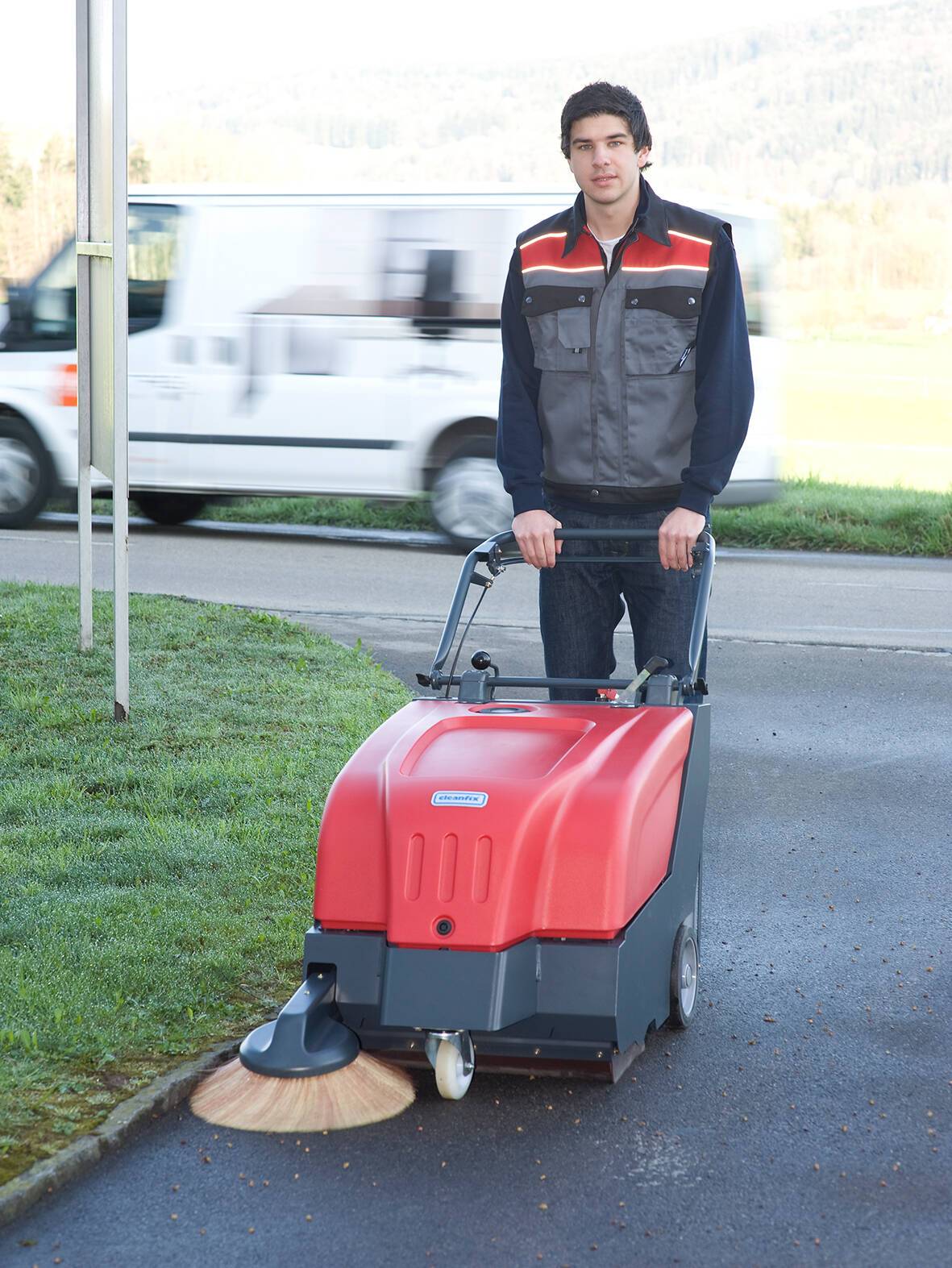- Grande maniabilité, grâce à un système d'entraînement performant et une vitesse de balayage de 5 km/h
