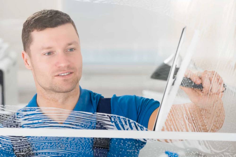 Utiliser un grattoir pour vitres, ne pas gratter une vitre à sec !