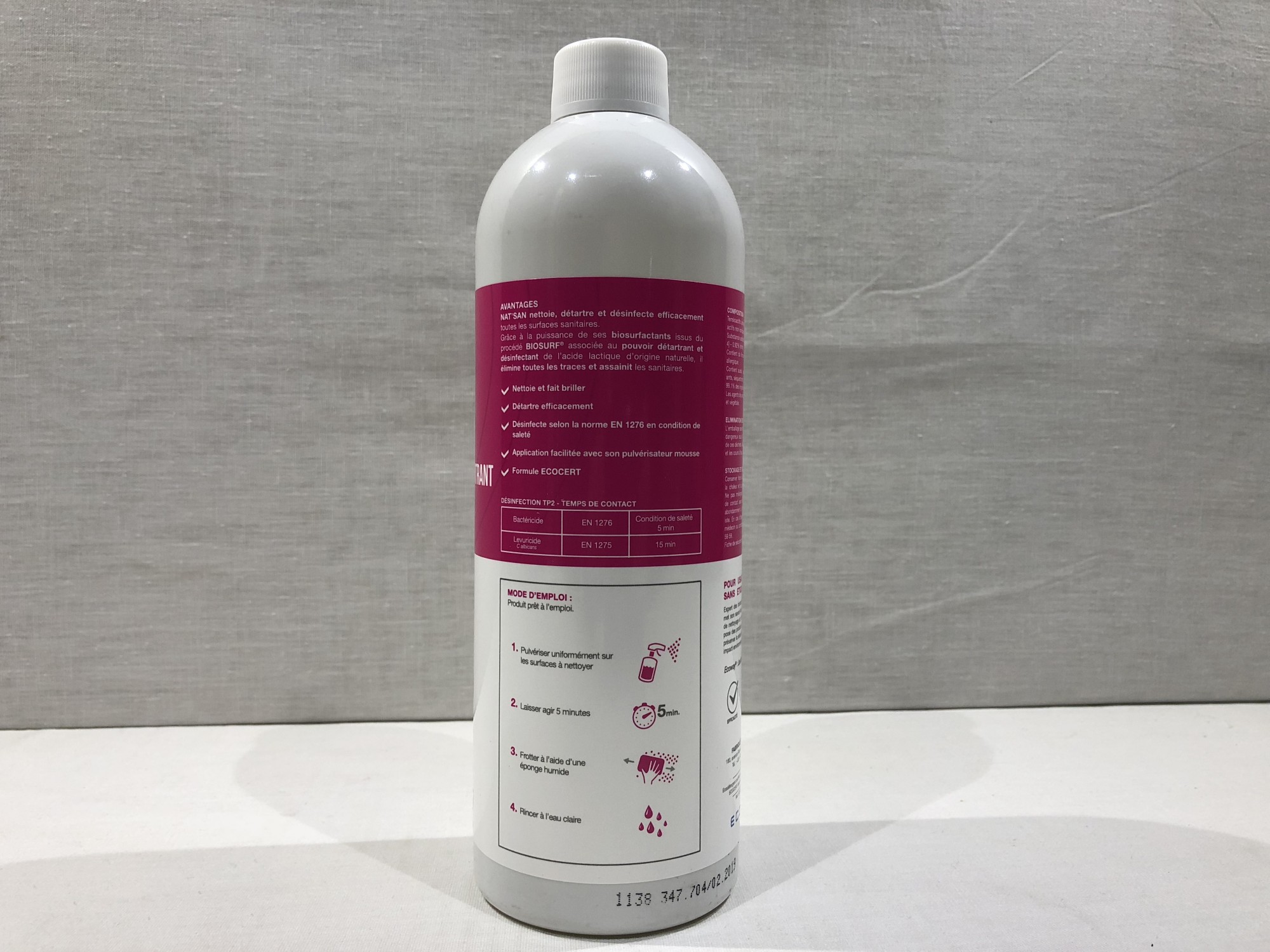 Avec son label Ecocert, Nat’san est un nettoyant désincrustant surpuissant. Excellent bactéricide (EN 1276) et levuricide (EN1275), sa formule prêt à l’emploi apporte une brillance éclatante pour vos sanitaires.